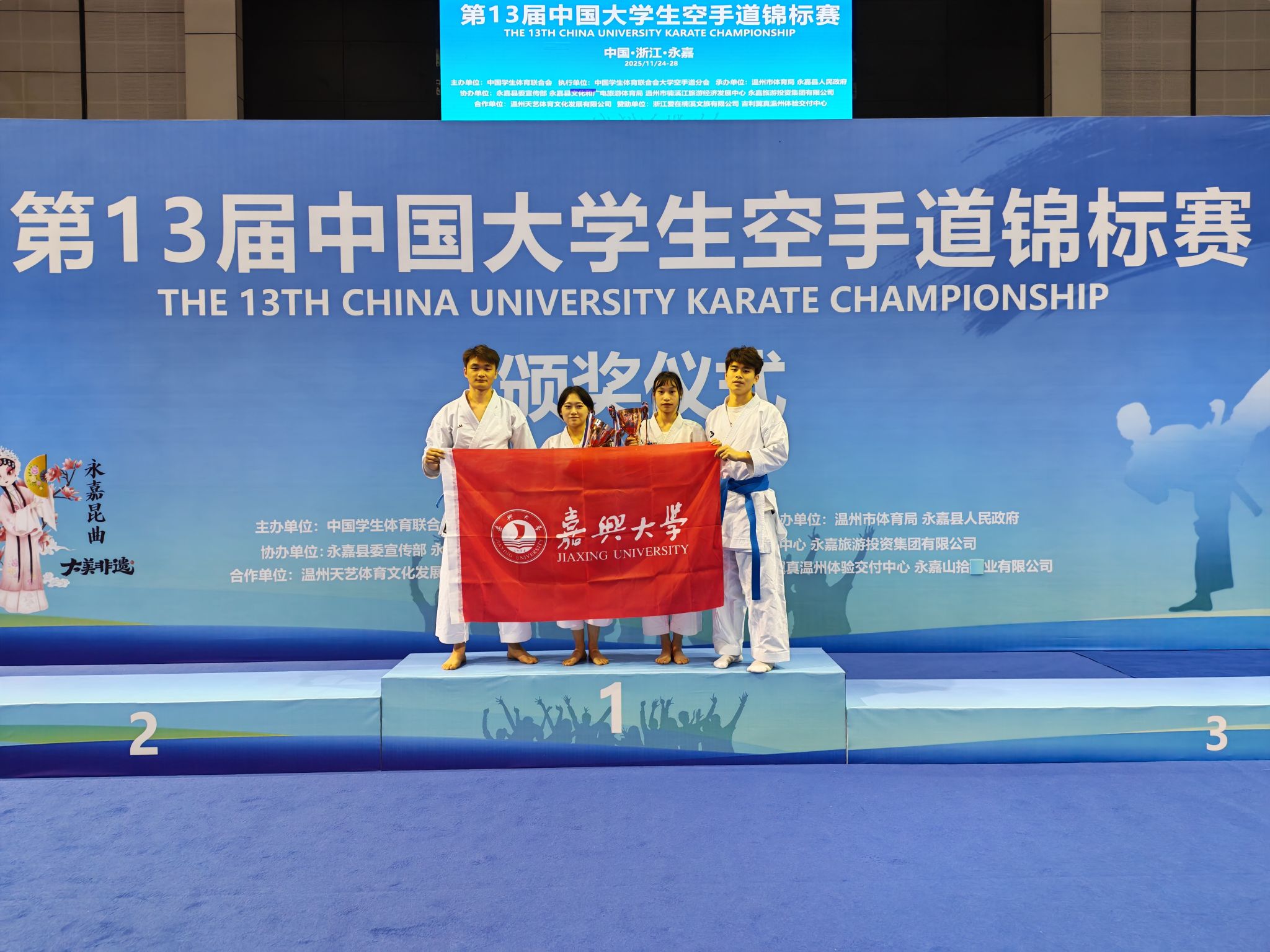11月24日至28日,第13届中国大学生空手道锦标赛在温州永嘉县举行。本届赛事由中国学生体育联合会主办,作为全国高校空手道领域的顶尖赛事,共吸引了来自全国78所高校的700余名运动员,围绕型、组手等多个项目开展了为期5天的高强度角逐。我校空手道代表队一路过关斩将,最后斩获1银3铜、2个第五名和7个第七名的优异成绩,在全国赛场上展现了嘉大学子的良好风貌与空手道精神。