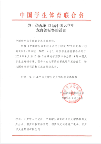 附件:第13届中国大学生龙舟锦标赛竞赛规程